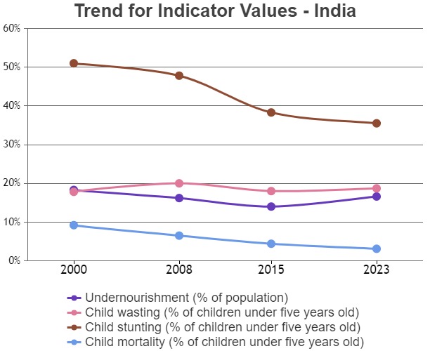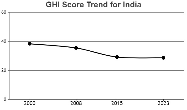 - The rate of decline in India’s GHI score has slowed down in recent years.